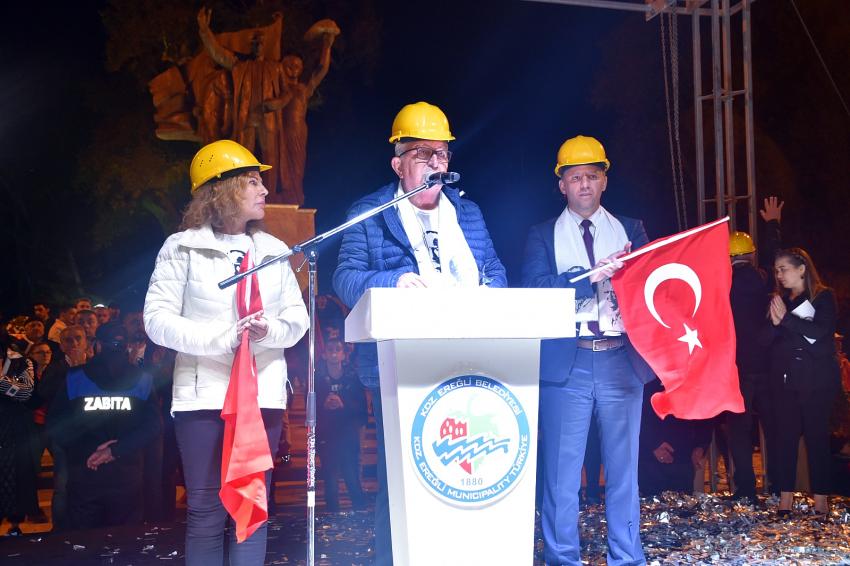 Belediye Başkanı Halil Posbıyık, Cumhuriyet yürüyüşüne katılan halka anıt önünde kurulan sahneden seslenerek “Cumhuriyet değerlerine birlikte sahip çıkacağız” dedi.